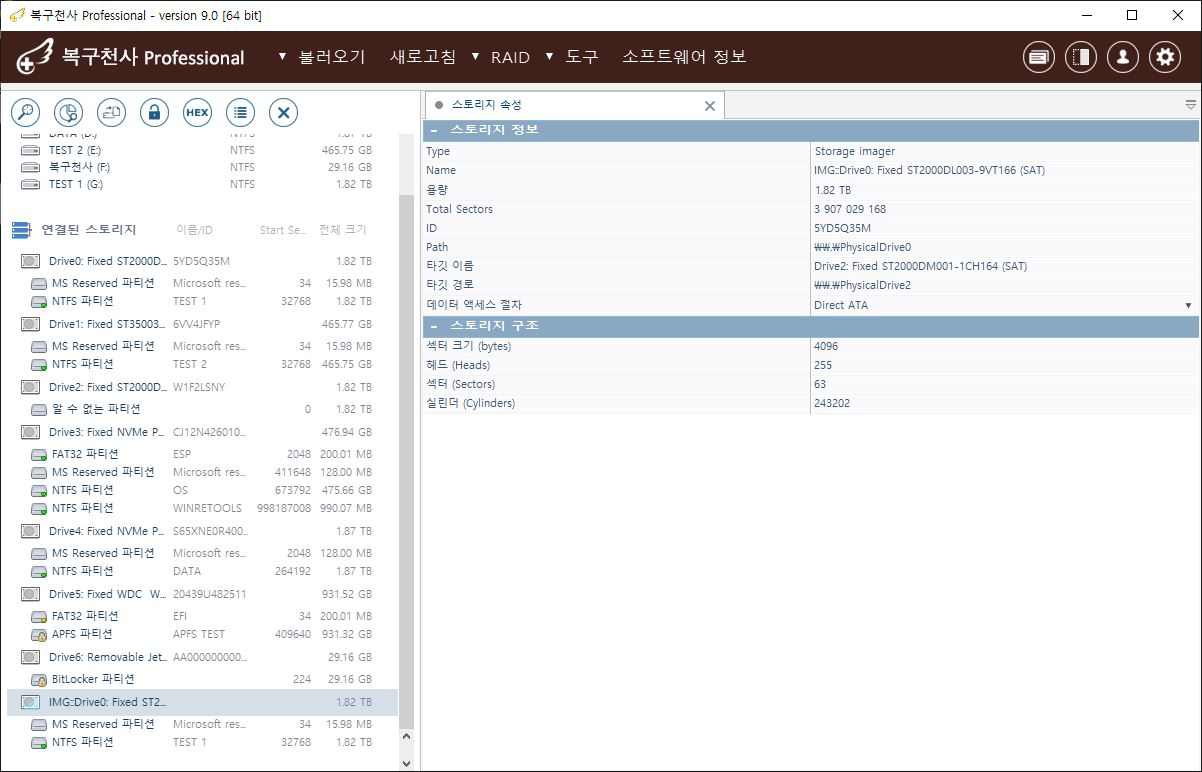 이미징 작업이 완료된 경우, 프로그램을 재실행한 후 선택한 타깃 드라이브에 백업이 정상으로 완료되었는지 확인합니다.